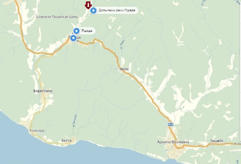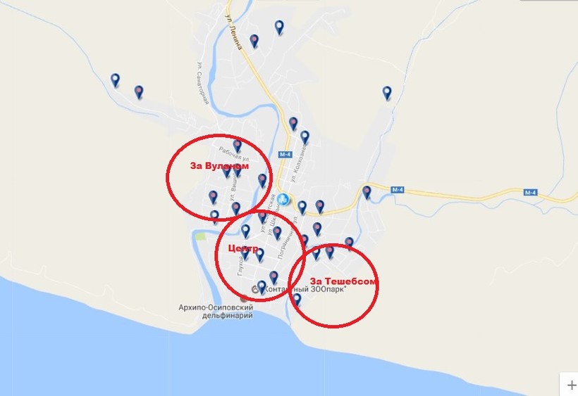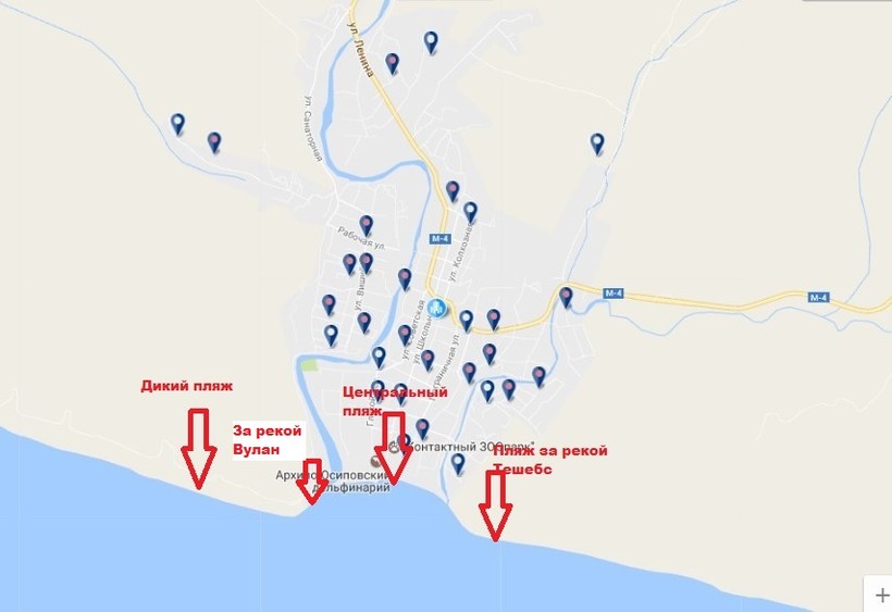 Пляжи Архипо-Осиповки отмечены на этой карте