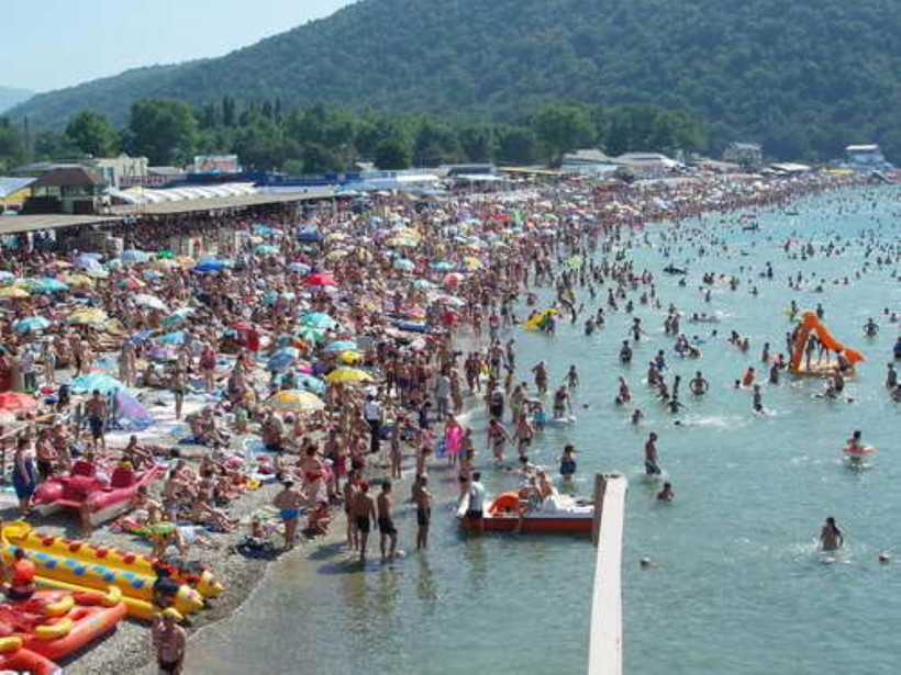 В июле, когда мы были в Арихипо-Осиповке, городской пляж представлял печальную картину: мы с трудом находили место, где можно расположиться.