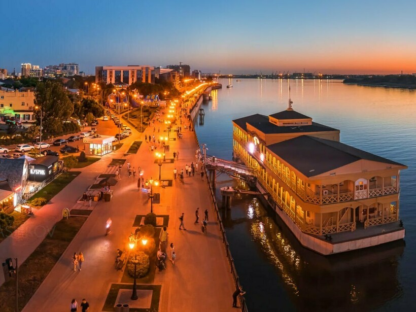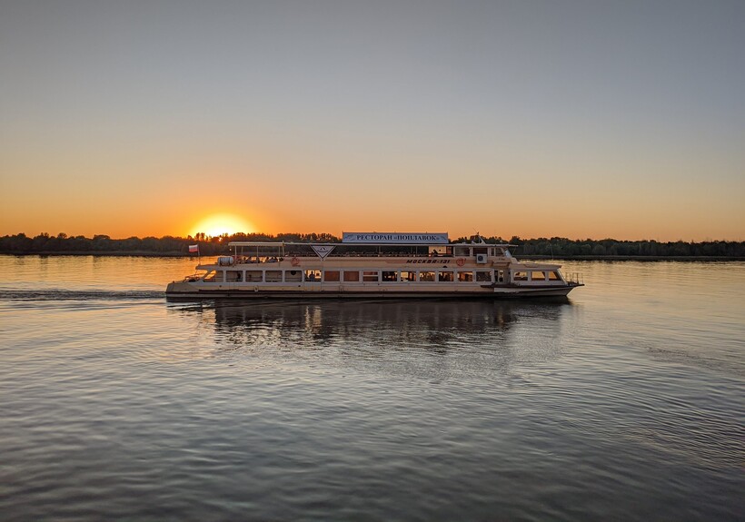 ИНТЕРЕСНЫЙ ФАКТ. Если в июне/июле выбрать рейс на речной трамвайчик в 20:00, а с середины августа — в 19:00, то в безоблачную погоду с борта теплохода можно наблюдать закат: солнце в Астрахани садится за Волгу.