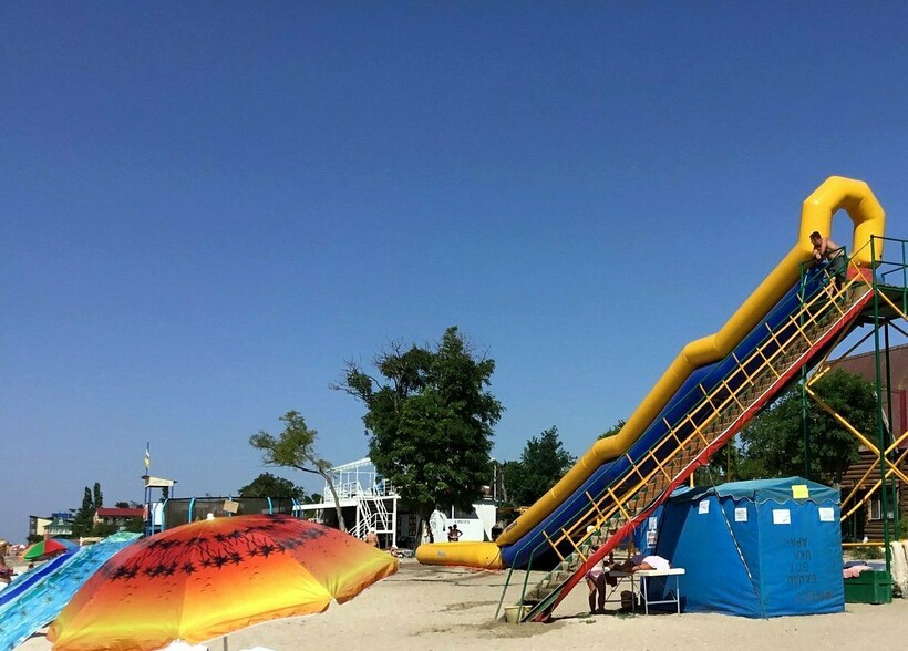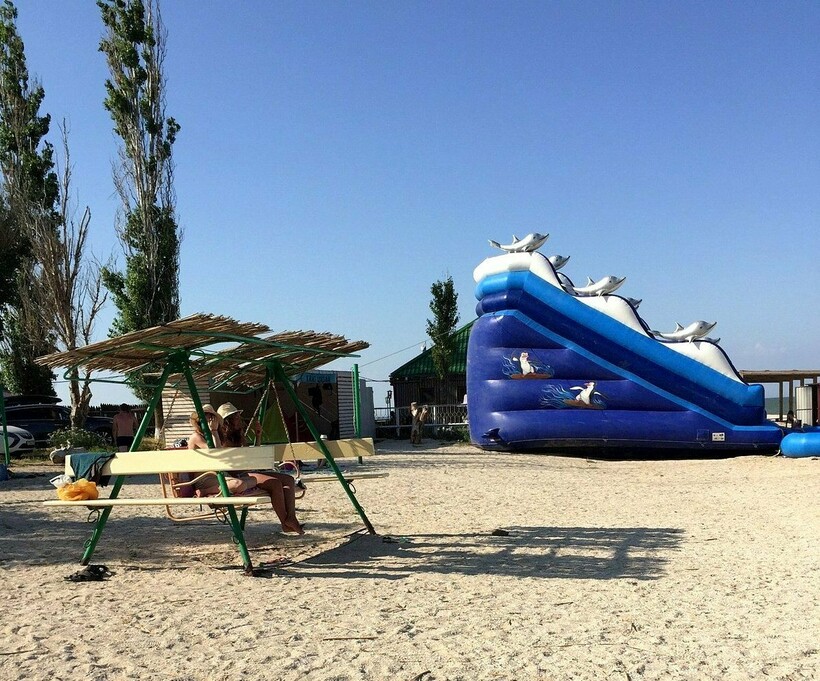 На Центральном пляже курорта есть прокат шезлонгов под тентами, работают души и туалеты. Дети могут покататься с горок, попрыгать на батуте.