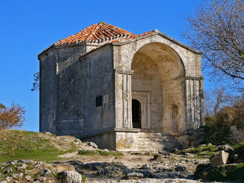 Мавзолей дочери Тохтамыш-хана, одного из Крымскох ханов XV века. Характерный образец сельджукской (родственной к османской) архитектуры. Внутрь нельзя, но можно туда заглянуть через решетку.