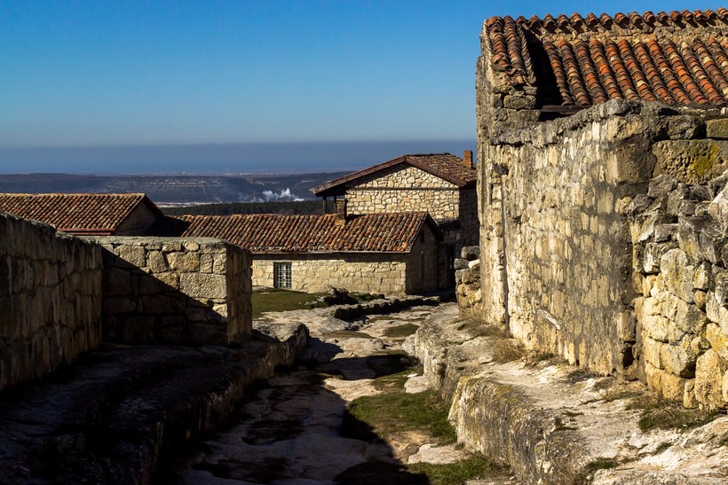 Пещеры различного назначение вырубались в твердых известняках горы с самого VI века. Жилые помещения, тюрьмы, конюшни, погреба, смотровые комнаты для часовых и стрелков, склепы... Не зря город зовется пещерным. Наземные постройки появились уже значительно позже, изначально это был скрытый в глубинах скал тайный город-крепость.