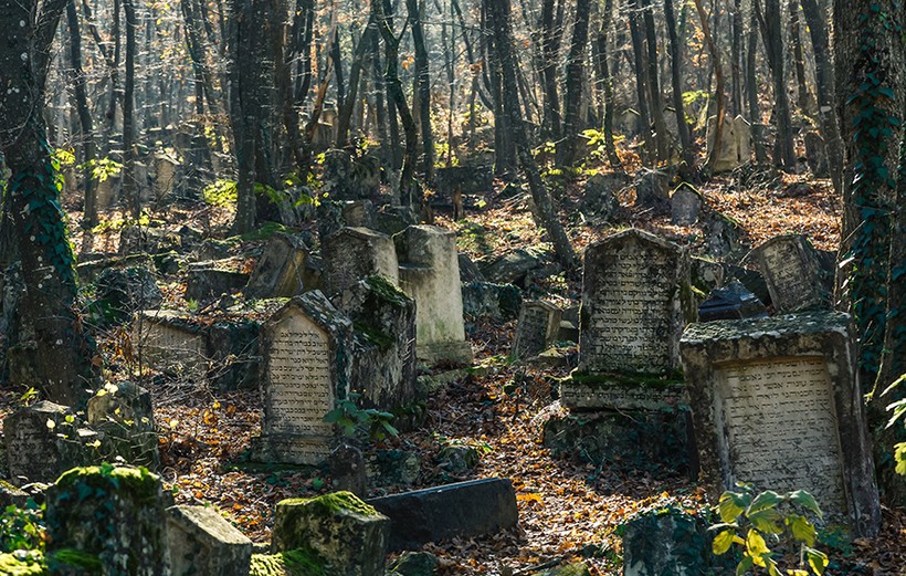 За верхними воротами города, в 500 метрах от них по плато, в лесу, находится древнее кладбище караимов. Причудливых форм надгробия, исписанные эпитафиями на иврите и покрытые мхом в тенистом лес с черными деревьями стоят посещения. Мрачноватое, но атмосферное местечко. Излюбленное крымскими и приезжими эзотериками и прочими мистиками.