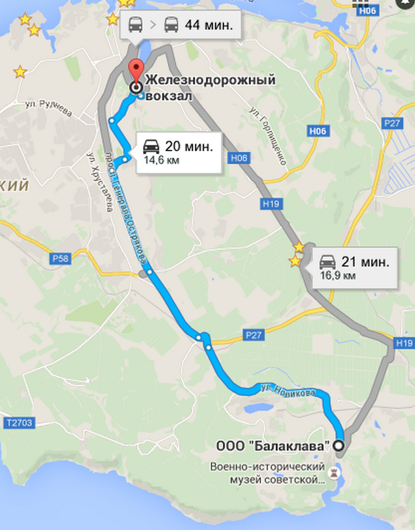 Когда вы выйдете в город, необходимо сесть на автобусы № 17, 20, 24, 25, 26 или троллейбус №20 и доехать до конечной остановки «5 километр». Оттуда в сторону Балаклавы идут маршрутки под № 9, стоимость проезда составляет 12 рублей.
