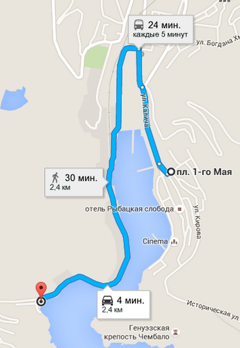 В Балаклаве как таковой автостанции нет. Конечная всех маршруток находится по адресу: площадь «1-го Мая». Это в самом центре города, недалеко от набережной Назукина.