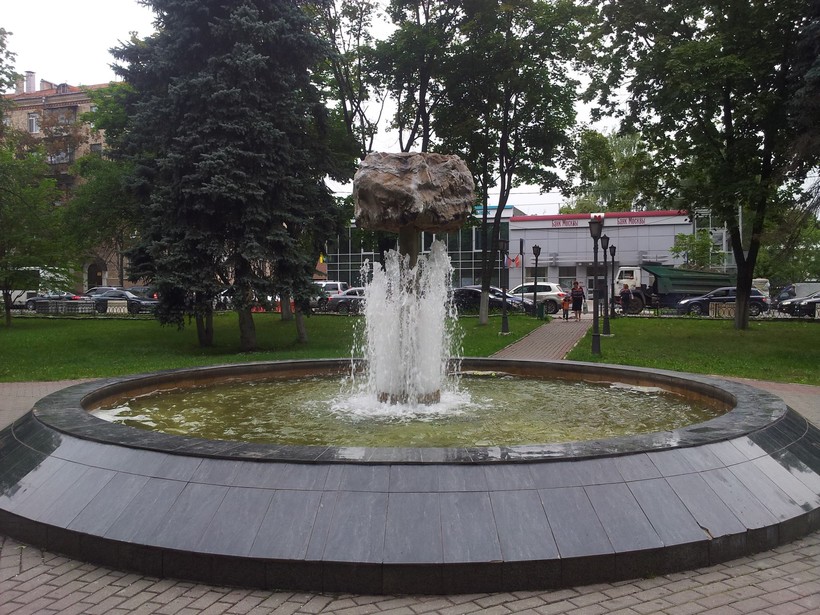 Он же «Камень». Фонтан изображающий камень, поднятый водой. Расположен фонтан в центре города на аллее около администрации.