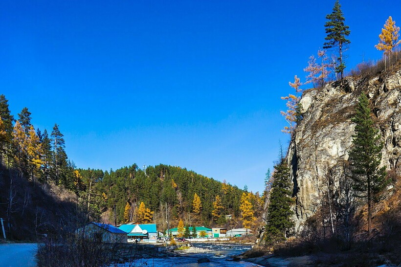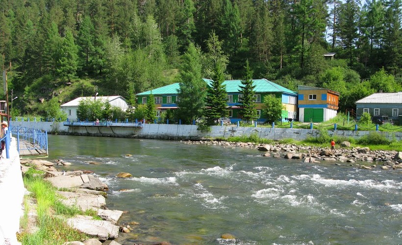Вокруг поселка возвышаются скалы, поэтому куда бы я ни пошла — она всюду гналась вслед, журча и переливаясь на солнце. Ихэ-Ухгун разделяет два берега, на которых сосредоточена вся жизнь местных. Здесь ловят рыбу, стирают белье, купаются.