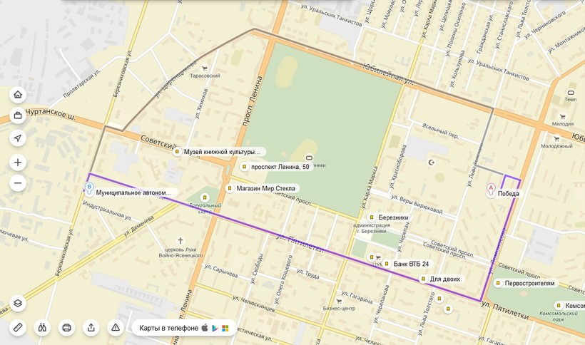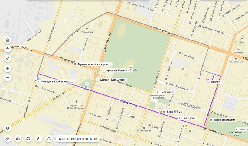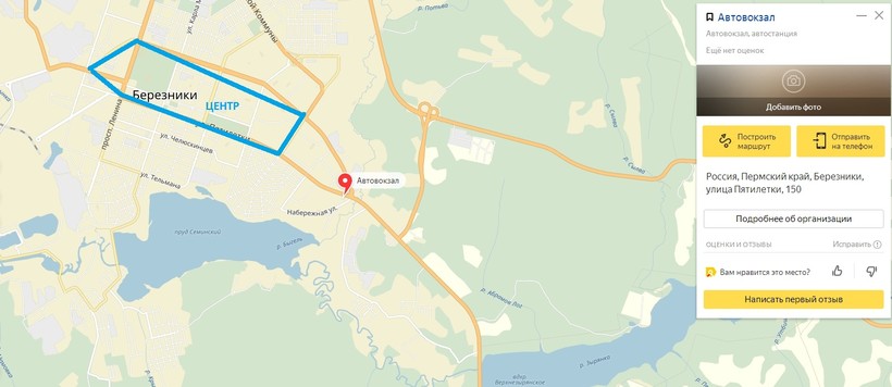 Конечная остановка в Березниках — автовокзал, я показала его на карте ниже: