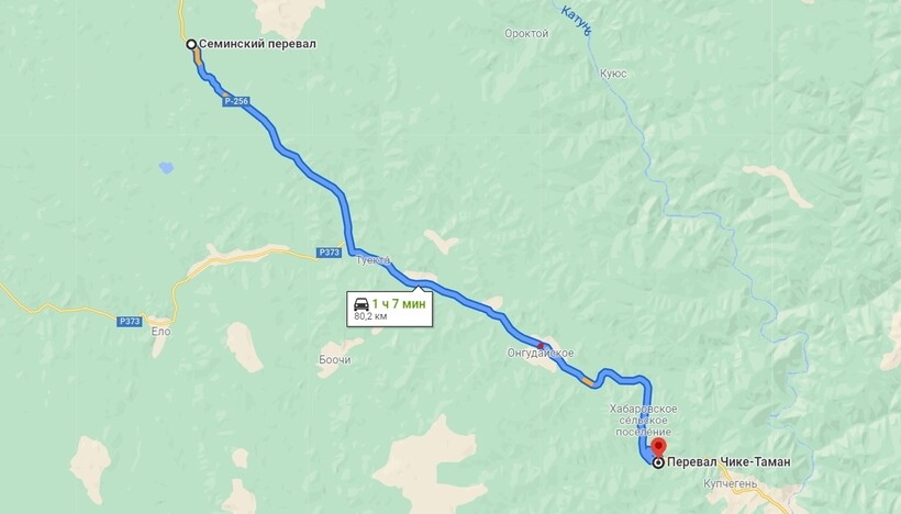 Расстояние между перевалами Семинский и Чике-Таман — около 80 километров.