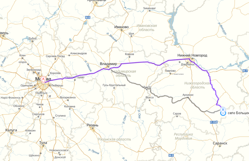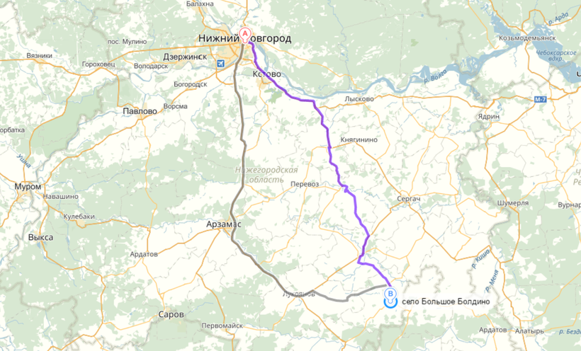 Удобнее всего путешествовать в Большое Болдино на личном или арендованном автомобиле (цены на аренду машины можно глянуть вот здесь). Так вы сможете распоряжаться своим временем и не быть привязанным к расписанию автобусов и поездов. На машине можно добраться из Москвы, Нижнего Новгорода, Саранска и других городов. Из Санкт-Петербурга есть смысл ехать только в том случае, если вы заядлый автолюбитель и 1300 км для вас пустяк. Остальным же я бы рекомендовала или остановку в Москве и далее, как на карте, или старый добрый поезд.