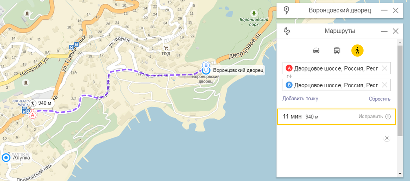 (меньше шансов заблудиться на развязках и поворотах) и быстрый вариант.