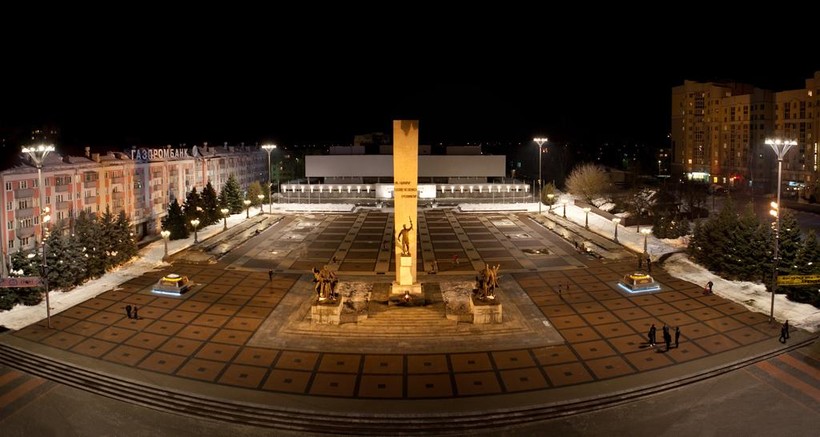 17.30 — обзорная площадка у памятника Пересвету. По легенде воин-инок Александр Пересвет, сразивший перед началом Куликовской битвы богатыря Челубея, родился в Брянске. На площадку нужно прийти пока светло, по каким-то причинам она не подсвечивается.