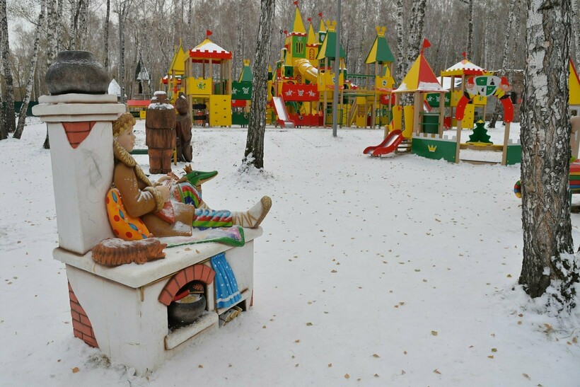 Внимание детей привлекут скульптуры сказочных героев из пушкинских сказок: золотая рыбка, белочка, грызущая орешки, дядька Черномор со своими богатырями, старуха, которая ругает старика за то, что он ничего не попросил у золотой рыбки, поп с Балдой, шамаханская царица.