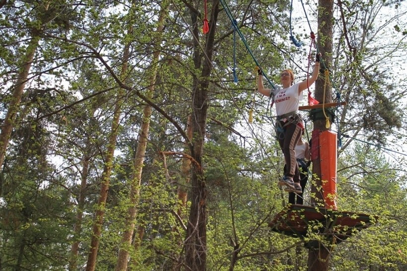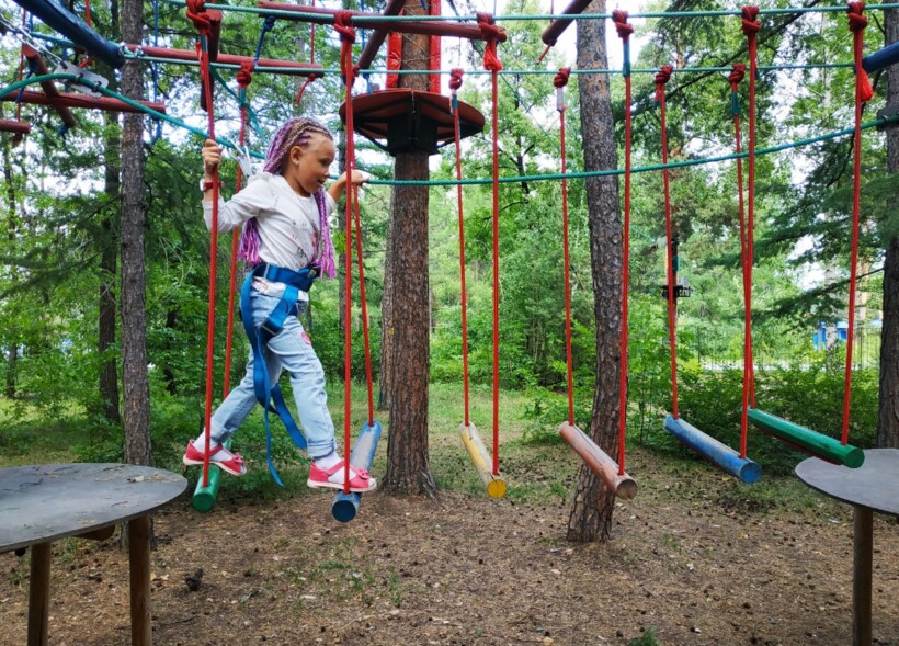 Зона благоустроенная, здесь есть аттракционы, веревочный парк, ларьки с фаст-фудами.