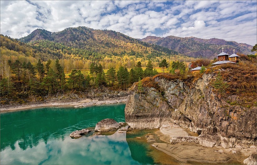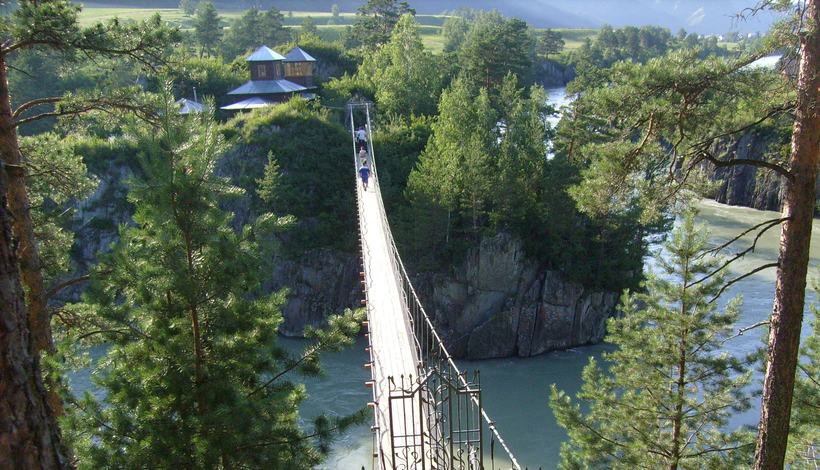 Остров Патмос. Древний остров, на котором построена церковь. Попасть сюда можно, только перейдя по подвесному мосту, который протянут над буйной Катунью. Остров был освящен для строительства храма еще в 1855 году! После окончания строительства здесь велись службы. После революции храм был разрушен большевиками. Однако в начале 2000-х годов церковь была построена заново. Сегодня сюда приходят помолиться верующие люди (бытует мнение, что посещение этого храма помогает людям завести малыша). Но также сюда заезжают и толпы туристов. При церкви есть лавка, где можно купить свечи и подать записки. А еще у церкви прямо на скале высечена икона. Сам по себе остров представляет скалу, которую образуют отвесные стены. Окружает остров шумная Катунь, которая быстро бурлит по многочисленным порогам. Чтобы попасть берега на берег, нужно пройти по узкому подвесному мосту (работает с 08:00 до 18:00 в летнее время и с 09:00 до 16:00 в зимнее время). Одновременно на мосту может находиться не более 10 человек. Но ранжируют количество людей сами путешественники. Поэтому часто бывают ситуации, когда на мосту оказывается больше человек или кто-нибудь начинает пугать других и специально раскачивать мост.Добраться до Патмоса можно двумя путями – приехать сразу на остров (вбивайте в навигатор Остров Патмос), по дороге стоят указатели. Либо можно прийти по горной тропе со стороны Чемальской ГЭС (маршрут займет около 20 минут).