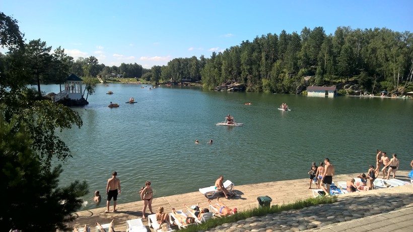 Пляжи возле искусственных озер есть на территории баз в соседних поселках – Аскате и в особой экономической зоне «Бирюзовая Катунь» (тут есть легальные казино, поэтому такое название). Базы называются «Рублевское заречье» и «Бирюзовая Катунь». В летнее время тут можно купаться и загорать, вход стоит от 350 рублей. Подробно про них писала здесь в аналогичном разделе.