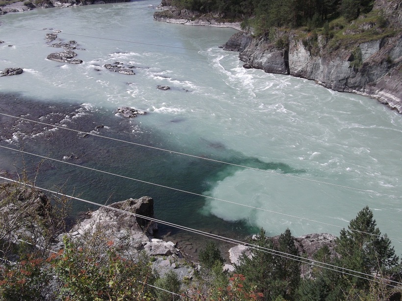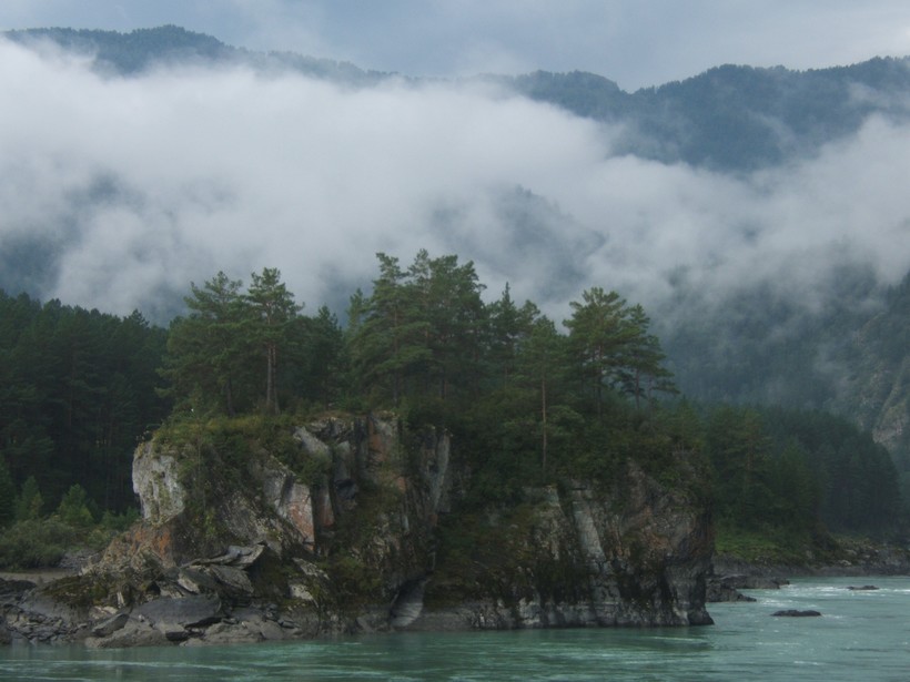Посмотреть слияние рек. Для этого нужно отправиться по горной козьей тропе, которая соединяет остров Патмос и территорию Чемальской ГЭС. По пути ближе к ГЭС вы увидите выступ и небольшую площадку, где всегда есть туристы, смотрящие как две горных реки соединяются в одну. Речь идет о Чемале, который впадает в буйную и своенравную Катунь. С высоты вы увидите, как две разных по цвету и характеру реки соединяются в одну.Отправляться на козью тропу лучше в сухое погоду и светлое время суток. Летом по ней идет бесконечная череда туристов, а вот осенью и весной, вы можете там оказаться в одиночестве. Зимой не рекомендуется выходить на нее в сильные снегопады.