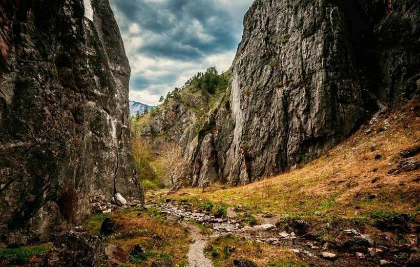 Маршрут в урочище Чечкыш начинается по пологой тропе в распадок между скалами. За вход нужно заплатить небольшие деньги, 100 рублей за взрослого, 50 — за ребенка. Через пять минут хода перед вами открываются отвесные скалы каньона