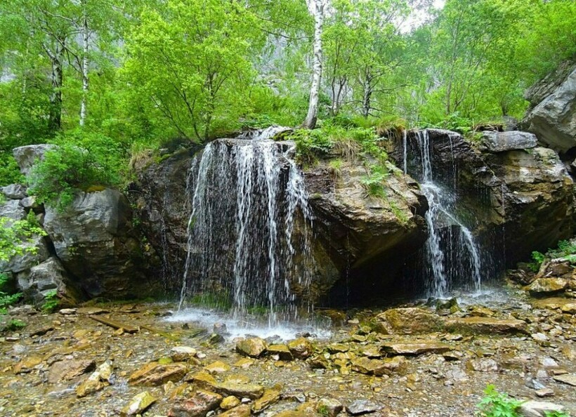 - двухкаскадный Камышлинский водопад на Катуни.