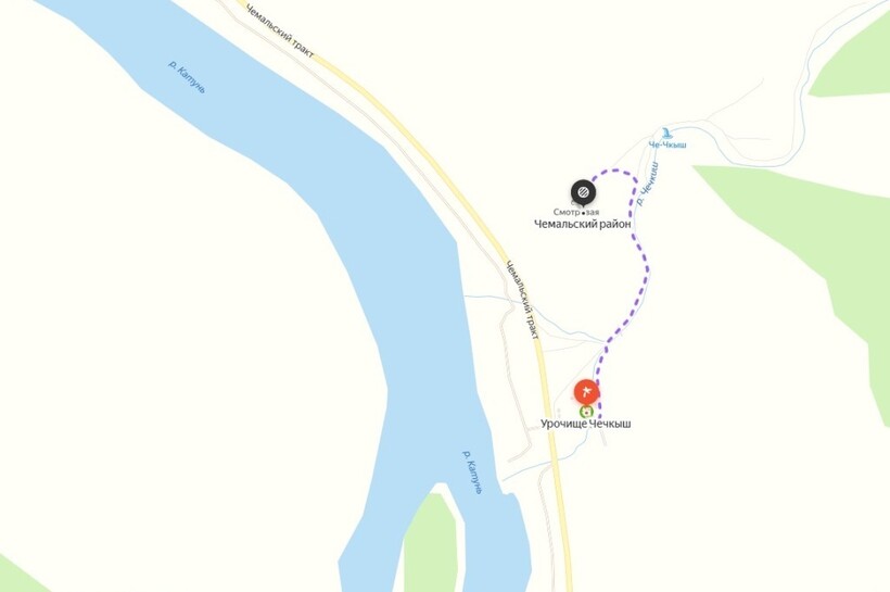 В коротком автомобильном маршруте на урочище и водопад Чечкыш Чемал по центру села проезжать не нужно. Объездная дорога проходит по улицам Садовая, Курортная, через мост и парк «Чемальские плесы» снова выходит на трассу 84К-116. Проехав по Чемальскому тракту еще 18 километров, вы увидите слева от дороги частокол и калитку входа в урочище Чечкыш.