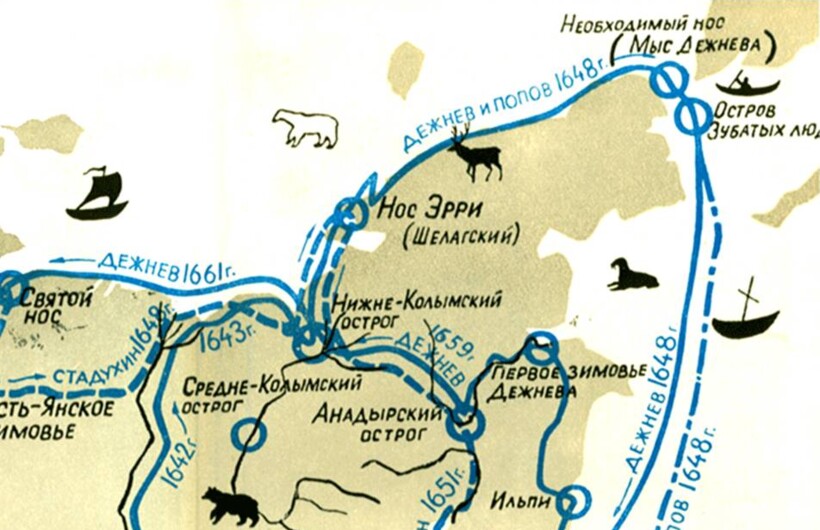 Семён Иванович Дежнёв — казак, землепроходец, мореход. С юных лет он ходил на торговых кораблях по Северному морскому пути до Мангазеи, города в Заполярье. С 30 лет (1635 г.) служил простым казаком в Сибири, был сборщиком ясака и обследовал северные территории. Открытие Колымы с основанием двух острогов на ней — заслуга Семёна Ивановича. По историческим документам известно, в каком году Дежнёв открыл мыс и пролив между двумя материками.