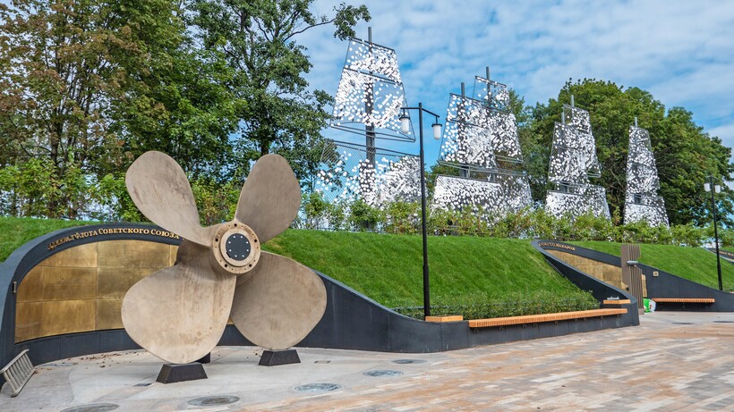 Аллея Славы рассказывает гостям Санкт-Петербурга о 13 мореплавателях и адмиралах, площадка «От парохода до атомохода» — место, где история кораблестроения выгравирована на стилизованных стендах — пароходных трубах. Можно сходить в веревочный городок (дети — 250 ₽, взрослые — 350 ₽), или прогуляться вокруг пруда по яблоневому саду. Детей всех возрастов ждет бесплатная игровая площадка (1000 м²).