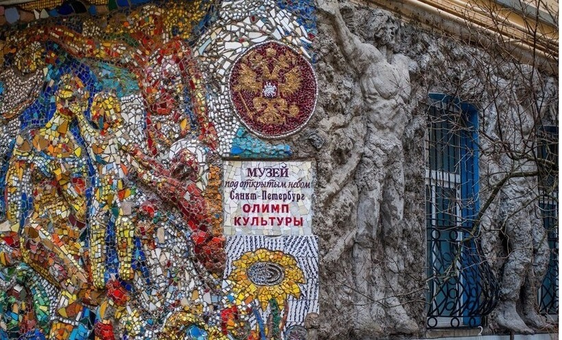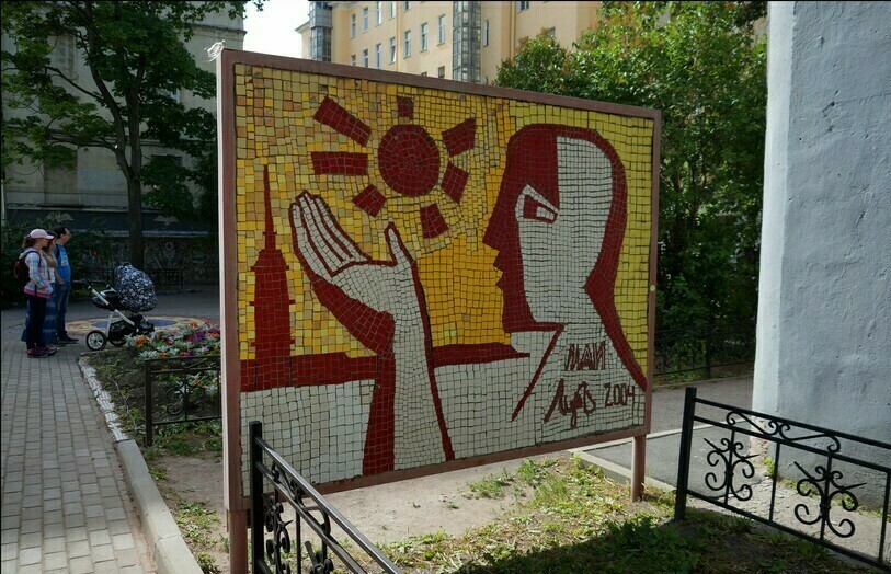 Мозаика главной стены, расположенная при входе во двор, посвящена истории Северной столицы. Она была сделана самим Лубенко.