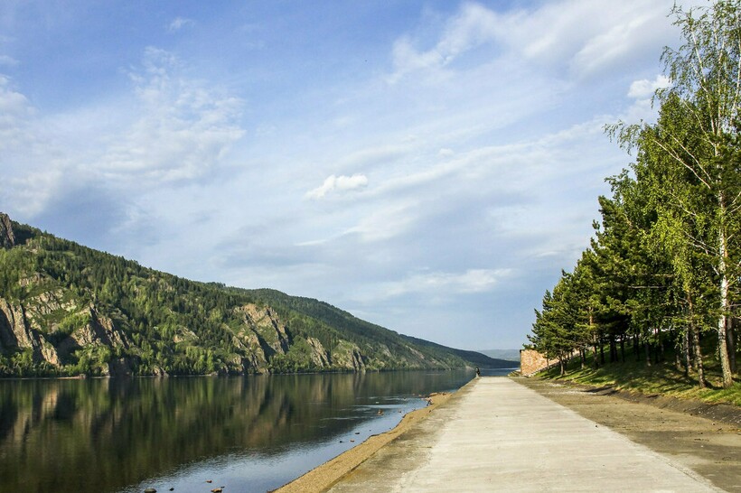 Дорога проходит вдоль Енисея — из окна вам откроются прекрасные виды на главную реку Сибири.
