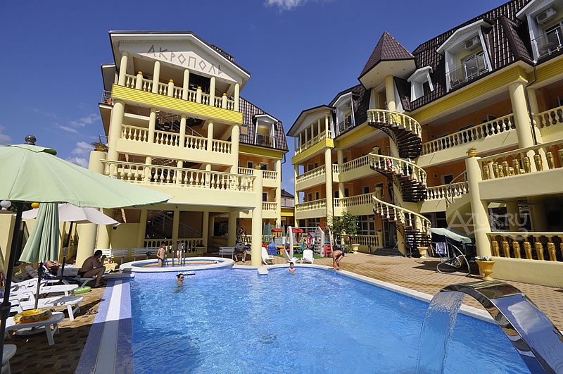 Прямо в центре разместились самые шумные и крупные: Гостевой дом «Прибой» в самом центре (ул.Ленина 16), с бассейном, детской площадкой и многоэтажным корпусом. Здесь всегда шумно, потому что любят останавливаться семьи с детьми. Отель «Парадиз» на Кирова 1-Б, рядом огромный «Прометей», «Акрополь», «Невский». Очень милый, но дорогой отель «Ретро» прямо в центре на Ленина 11-А.
