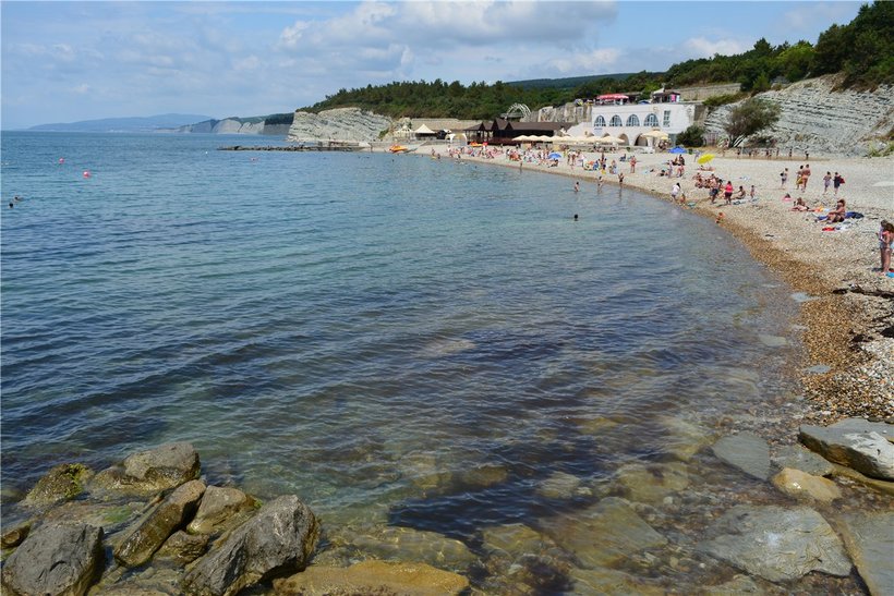 Здесь останавливаются те, кому нравится пляж с волнорезами, песчаный пляж. А еще отсюда удобнее гулять в сторону диких пляжей Джанхота. Это тихий район, здесь довольно мило, и рядом есть почта, аптека, магазин «Магнит», дешевая и вкусная столовая — кафе «Курортное Плюс».