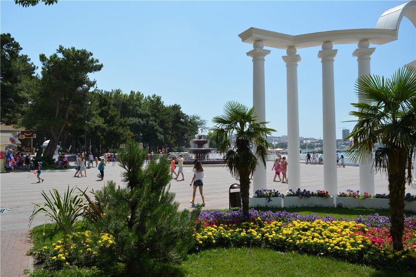 В Дивноморском очень красивая, уютная набережная, которая немного напоминает набережную Геленджика. Одна часть набережной тянется вдоль центрального пляжа, вторая проходит по санаторно-курортной зоне, соединяются они между собой симпатичным мостиком через речку Адербиевку.