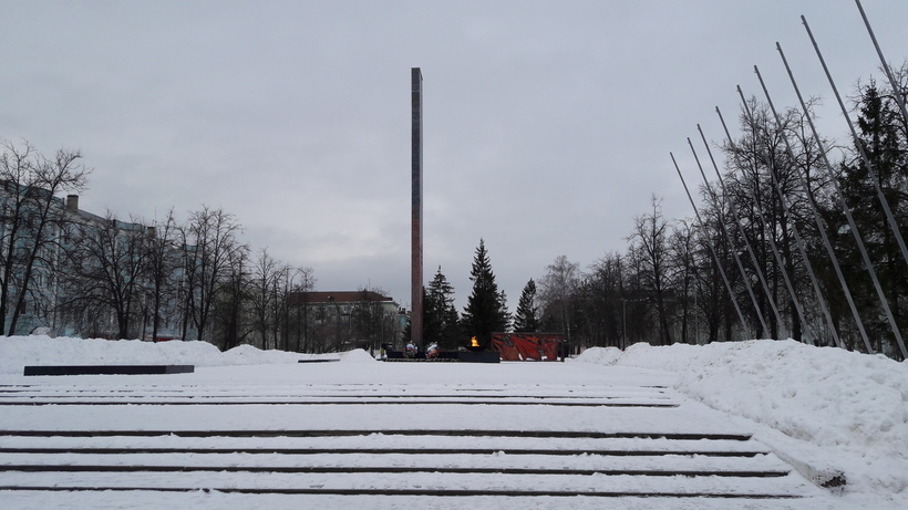 - Мемориал в честь погибших героев. Это аллея, вдоль которой высажены деревья, стоят лавочки. В центре мемориала вечный огонь и величаво возвышающийся рядом 18-метровый обелиск со словами почести погибшим. Он расположен на площади Героев — на пересечении бульвара Мира и проспекта Ленина. Конечно, вечный огонь в России не редкость, но посмотреть на него и отдать дань уважения погибшим героям стоит всегда . Вниз по аллее находится мемориал, посвященный погибшим в локальных военных конфликтах (война в Афганистане, Чечне и др.). Вдоль самой аллеи размещены плакаты с именами, портретами, возрастом и обстоятельствами смерти служащих. Они дают реальное представление о том, кто и как погиб, что создает несколько угнетающее впечатление, заставляет лишний раз задуматься о том какой ценой достигнут мир, в котором сейчас мы живем. Надо признать, что эта аллея особо привлекла мое внимание благодаря этому. Из всех подобных монументов, именно после этой аллеи остался неприятный осадок с мыслями о том, за что умерли эти молодые люди и что в итоге получилось.