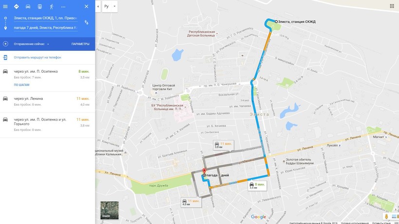 Железнодорожная станция Элиста расположена хоть и на окраине, но в черте города, добраться до самого центра — Пагоды 7 дней —не составит труда даже пешком, расстояние всего 3 км.