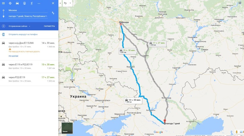 Элиста — столица Калмыкии и единственный город республики с населением более 100 000 человек, расположеный от Москвы на расстоянии чуть больше 1200 км. Вплоть до конца весны 2016 года добраться до Элисты можно было на автомобиле, автобусе или самолете, а с конца мая 2016 года возобновила пассажироперевозки железная дорога: в беспересадочных вагонах из Элисты можно доехать до Москвы. Здесь каждый выбирает, что ему больше по душе и по карману. Для меня решающими факторами при выборе транспорта стали время и цена, поэтому я остановила свой выбор на золотой середине.