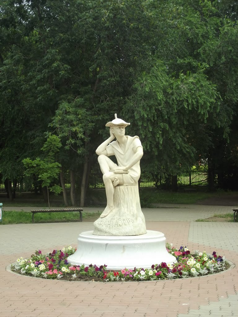 Находится сквер неподалеку от дома-музея Льва Кассиля. В центре сквера вы встретите памятник "Фантазёр", установленный в 2006 году к 101-й годовщине со дня рождения писателя. Беззаботный,счастливый, с лопухом на голове... Здесь, на скамейках вокруг памятника, любит собираться такая же беззаботная молодежь.