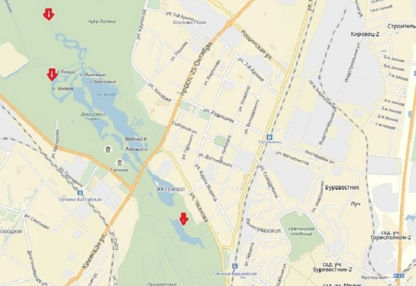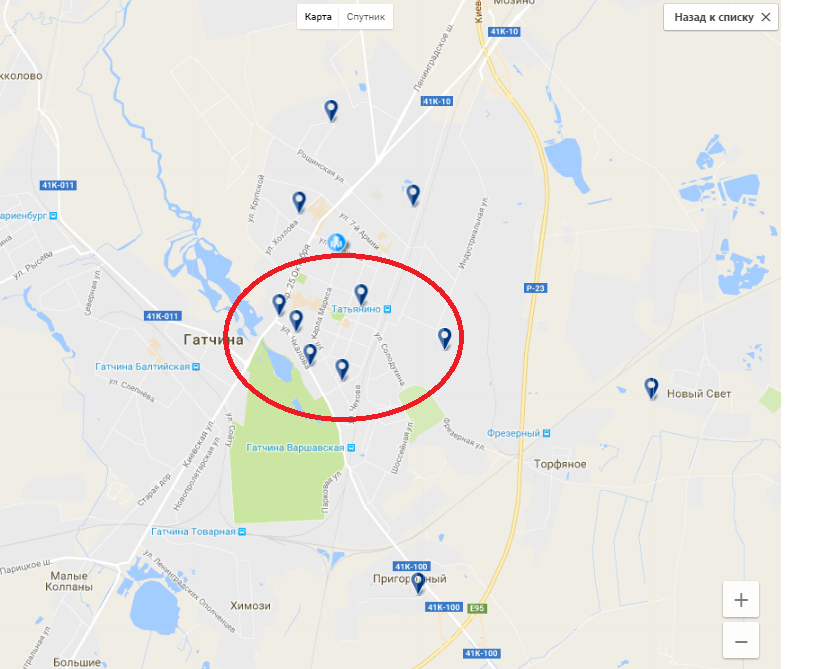 Конечно, центр города и сейчас в преоритете. Хотя, как видно на карте, в Гатчине отелей не так уж и много.