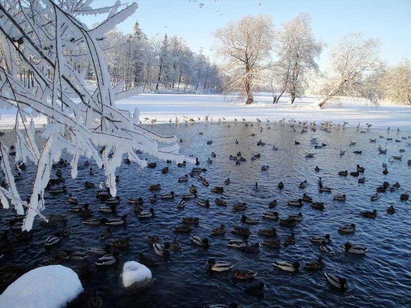 В парке любимое развлечение всех от мала до велика и в любой сезон: кормление уточек. Утки весьма прикормленные, подходят совсем близко и требуюют подачки.