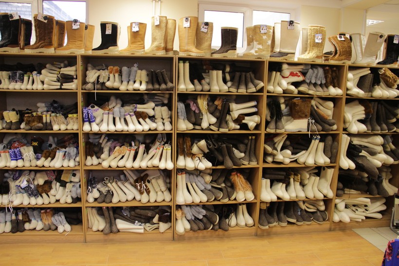 Выделила бы я один магазин, принадлежащий ПО Гатчинский Промкомбинат. Находится он на улице Хохлова, 16, и там можно купить изготовленные на комбинате натуральные валенки. С разными рисунками, разной расцветки и размеров. Зимой я купила такие валенки своей внучке, так всю зиму она из них не выпрыгивала.
