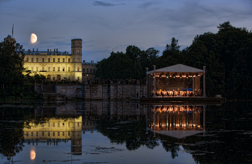 Ночь музыки стала традиционным событием в жизни города, и чтобы послушать оркестр под открытым небом, в Гатчину в это время съезжается много гостей. На глади Белого озера монтируется понтон, на котором размещается живой оркестр, исполняющий классические произведения известных авторов. Каждый год программа меняется.