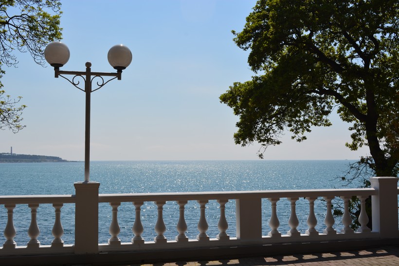 На Тонком мысу набережная доходит достаточно далеко. Пешая прогулка из центра до конечной точки набережной займет у вас минут 40, не меньше. Когда я шел в направлении Тонкого мыса, то заметил, что пляжи меняются с песчаных (вдоль центральной набережной) на мелкую круглую гальку.
