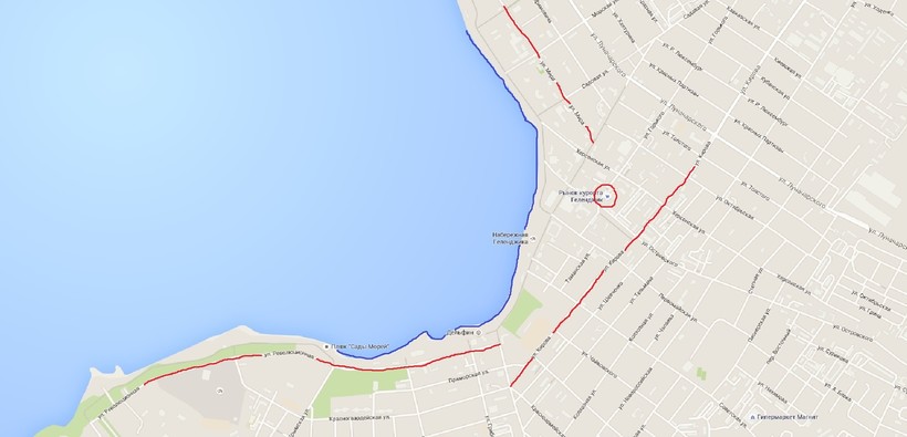 Если же вы предпочтете общественный транспорт, то можете вообще не волноваться. Транспортная логистика в Геленджике развита хорошо и к набережной вас довезут из любой части города. Ближайшая к центральной набережной остановка общественного транспорта – это «Рынок». Оттуда рукой подать до набережной и центрального пляжа. В минуте ходьбы непосредственно и сам продуктовый рынок, на котором полно всяческих вкусностей. Кстати, издавна на этом рынке дают пробовать то, что вы собираетесь всерьез или якобы купить. Сколько раз было, что я, пока ходил по рынку, в прямом смысле наедался :) Также рядом парочка торговых центров, администрация, кинотеатр и прочее. Ну и, само собой, отсюда разъезжаются маршрутные автобусы по всему городу, остаётся лишь выбрать подходящий маршрут.