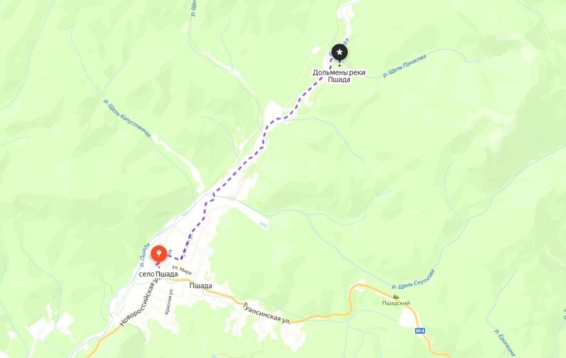 - поблизости реки Щель Панасова (дольмены в Геленджике в селе Пшада);