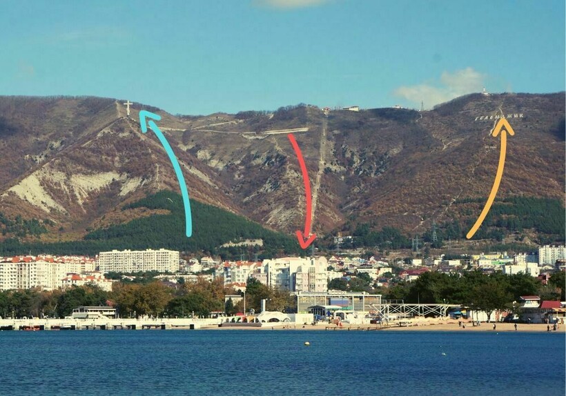 На каждом этапе восхождения открываются потрясающие виды на бухту и соседние хребты. Можно фотографироваться или наблюдать некоторые редкие растения. Чтобы вы не тратили время на поиски, как называется гора с крестом в Геленджике, мы поправим, это не гора — это Маркотхский хребет.