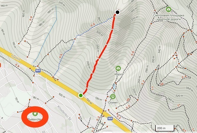 - Минуйте вход в парк «Олимп», и спустя 120 метров вам откроется тропа, ведущая к вершине горы.