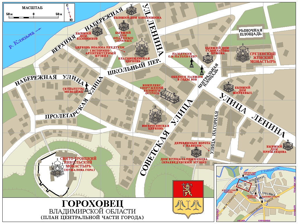 В списке популярных карт можно посмотреть карту Гороховца на русском с достопримечательностями. Для скачивания карт достаточно щелкнуть мышкой по изображению.
