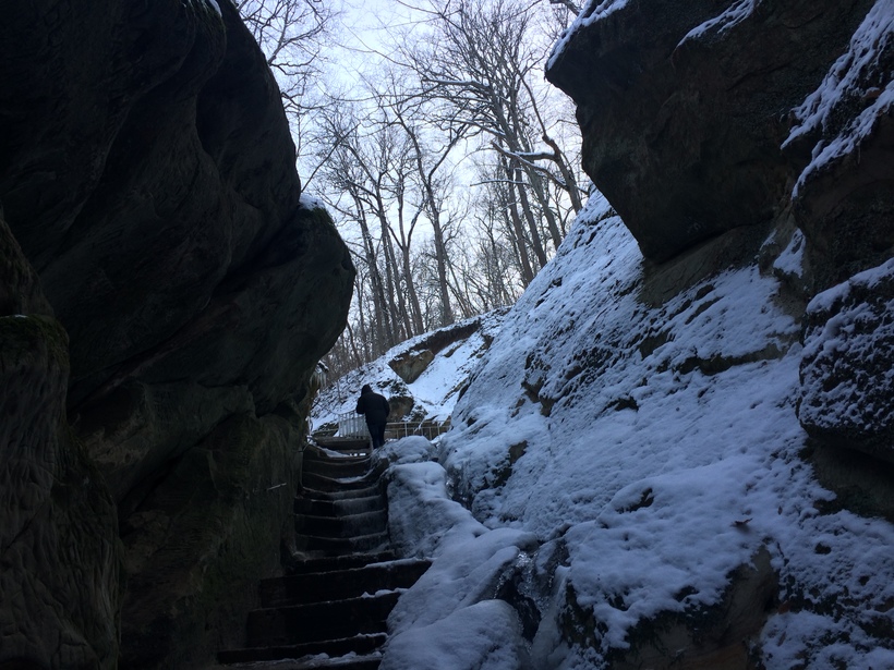 - Дантово ущелье. Начав путь по маршруту, рано или поздно вы выйдете ко входу в ущелье, длина которого составляет 100 м. Название за ним закрепилось ещё в XIX веке: мрачные своды сильно напоминали впечатлительным отдыхающим вход в преисподнюю, описанный в известном произведении Данте Алигьери. В любое время года здесь чувствуется прохлада и сырость, спасающая летом и бодрящая зимой. Вдоль скал проложены перила и пробиты ступени, но советую быть особенно внимательными в холодные месяцы, поскольку дорожка может полностью покрыться льдом, что затруднит прохождение маршрута.
