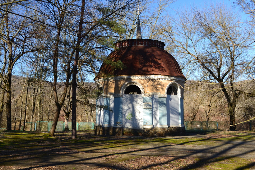 Находится на территории уже исхоженного нами Целебного парка. Местные жители заприметили это место ещё с тех далёких времен, когда здесь бил источник с минеральной водой. Увы и ах, источник не пощадила сама природа, но напоминание о его лечебных свойствах продолжает жить в этой часовне, которая по сей день является действующей.