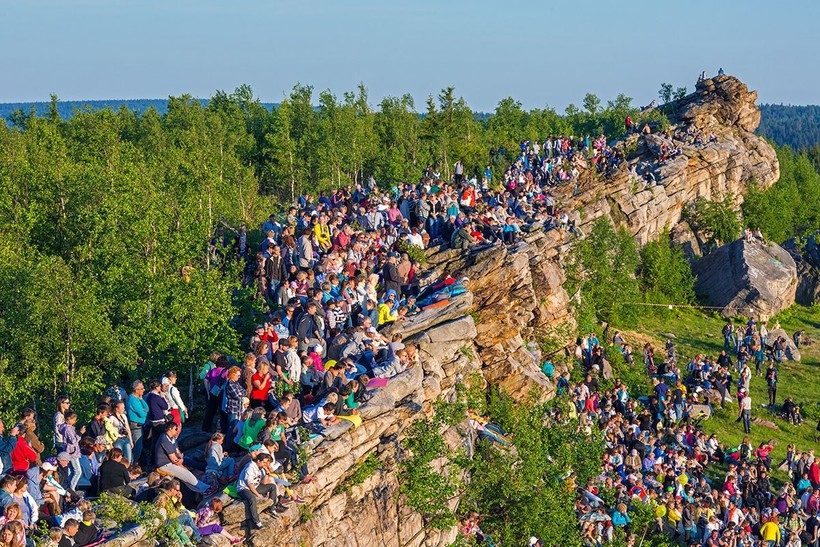 Необычное действие происходит на вершине хребта «Рудянский спой» горы Крестовой в конце июня. На нем устанавливают сцену с невообразимым видом на западную сторону. И во время заката проходит спектакль. Первые годы на площадке выступал балет Пермского оперного театра, затем стали приезжать театры из других городов. В 2016 году московский театр показал рок-оперу "Юнона и Авось" и собрал пока рекордные для фестиваля 20 тысяч зрителей. Надо признать, что это настолько захватывающее, интригующее и красивое зрелище, что все трудности, которые могут возникнуть на пути к нему, можно и преодолеть.