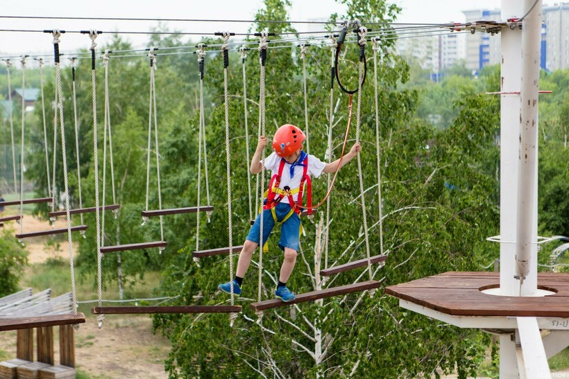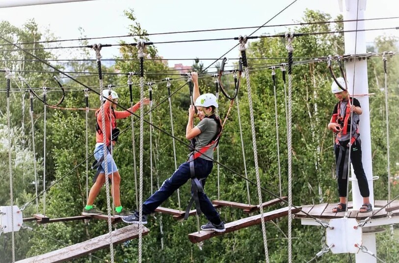 канатный парк — трассы разной сложности рассчитаны на детей от 4 до 15 лет.