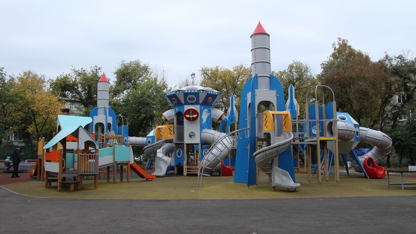 Космическая игровая площадка на бульваре Рябикова в Иркутске